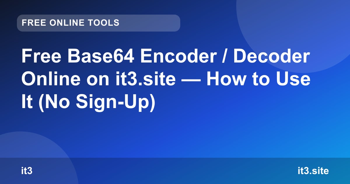Free Base64 Encoder / Decoder Online on it3.site — How to Use It (No Sign-Up)