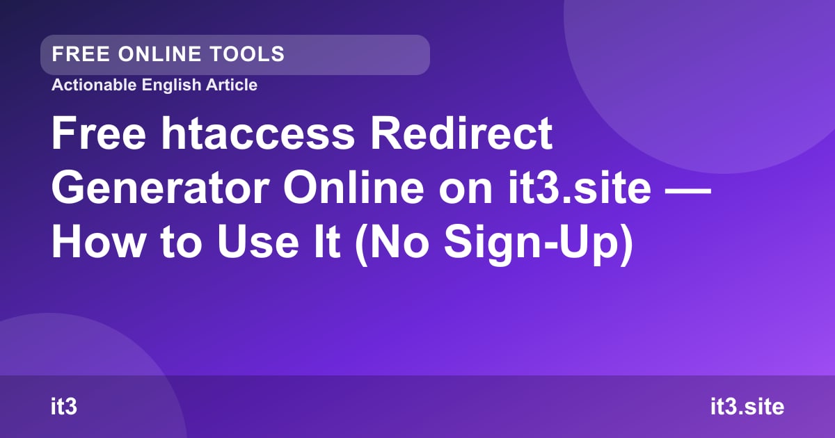 Free htaccess Redirect Generator Online on it3.site — How to Use It (No Sign-Up)